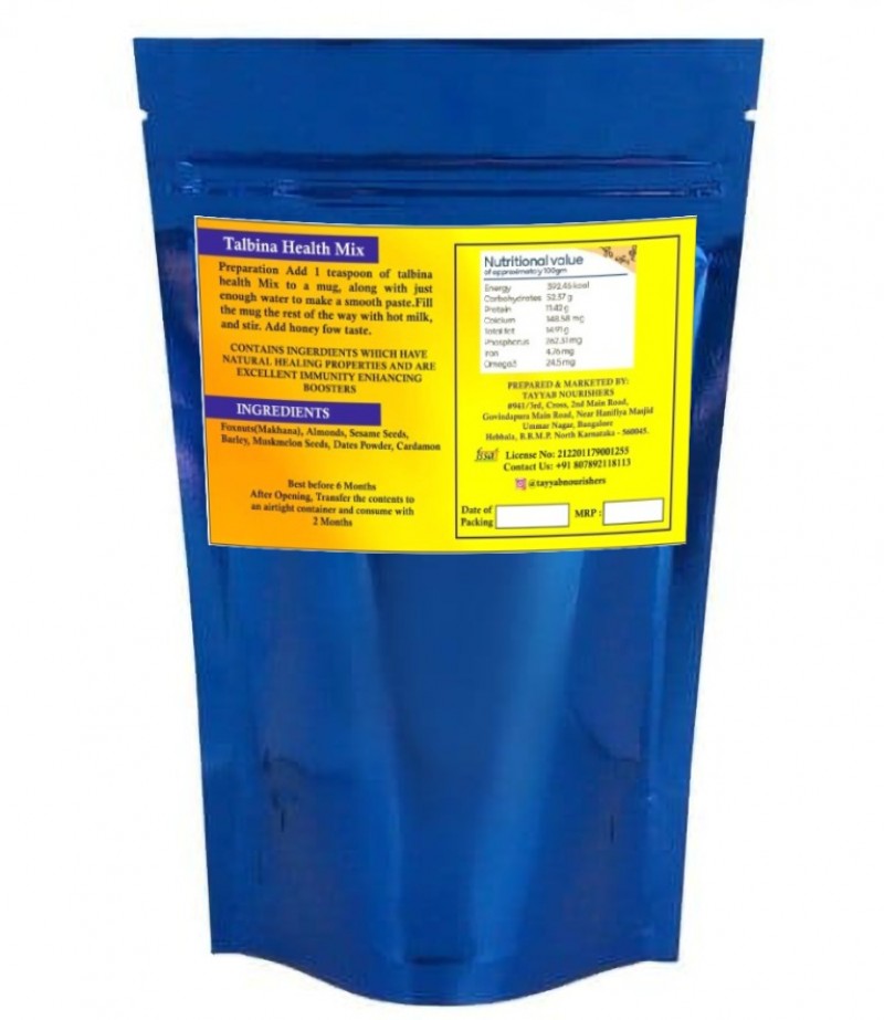 TALBINAH HEALTH MIX IS AN INSTANT HEALTH DRINK MIX WHICH IS AN EXCELLENT IMMUNITY ENHANCING DRINK. IT IS COMPLETELY HOMEMADE WITHOUT ANY ADDED PRESERVATIVES. DO TRY OUR DRINK MADE OF NATURAL IMMUNITY BOOSTING INGREDIENTS FOR HEALTHY LIVING. CAN BE CONSUMED BY ALL AGE GROUPS ABOVE AGE OF 1